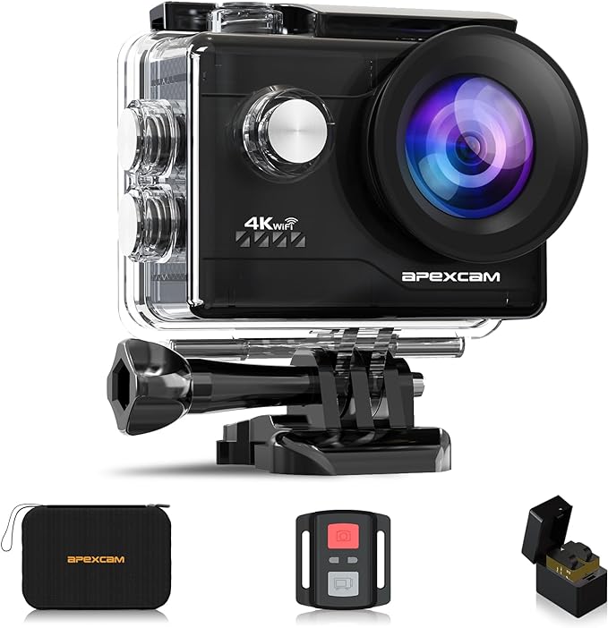Op zoek naar een betaalbare vlogcamera geschikt om te gebruiken tijdens het sporten? De Apexcam 4K Action Cam combineert een scherpe 4K-resolutie met 20MP foto’s, ideaal voor avontuurlijke kinderen en tieners. Hij wordt geleverd met een uitgebreid pakket accessoires, zoals een waterdichte behuizing, afstandsbediening, helm- en stuurbevestigingen, en een handige opbergcase. Een leuke vlogcamera om te geven als cadeau aan een tiener!